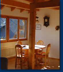 Ferienwohnung 3 für 3 - 5 Personen Maisonette-Wohnung über zwei Etagen: grosser Wohn-Schlaf-Raum mit Küche, zwei grosse Schlafzimmer, zwei Badezimmer, zwei Balkone, Liegewiese, Pkw-Abstellplatz, auf Wunsch Garage.